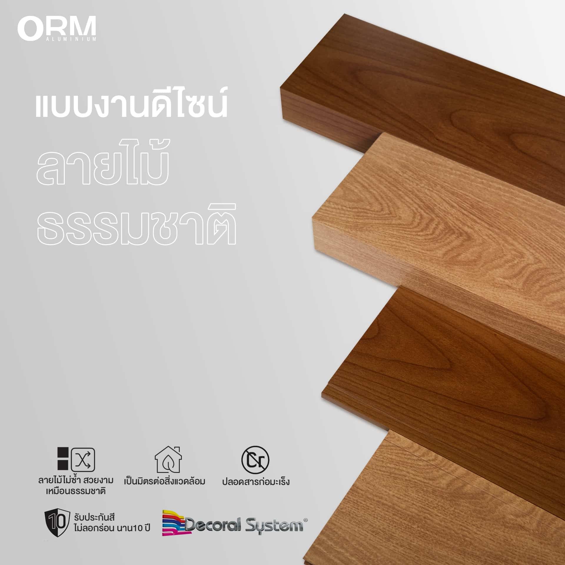 - อลูมิเนียมลายไม้ ORM ผลิตด้วยเทคโนโลยีเหนือระดับจากอิตาลี